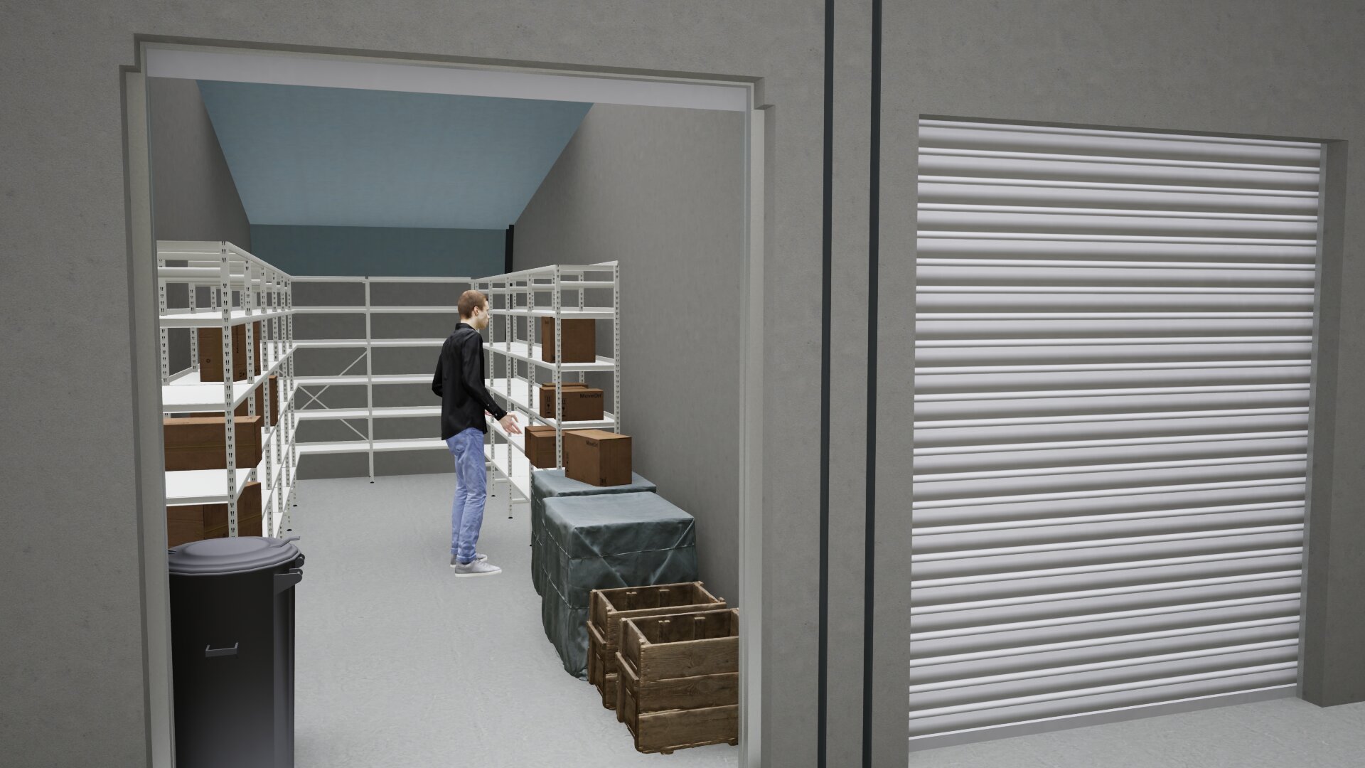 – De opslagunits op de verdieping worden v.v. een handmatige overheaddeur;