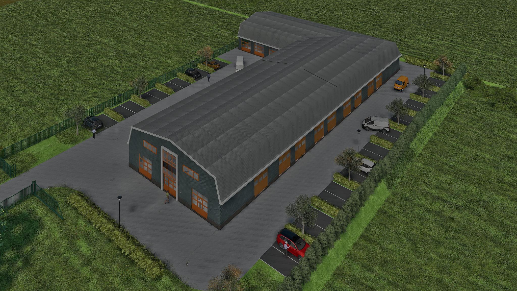 – Op de begane grond komt een centrale entree t.b.v. de opslagboxen op de eerste verdieping. De entree wordt v.v. een goederenlift geschikt voor europallets en trappenhuis;