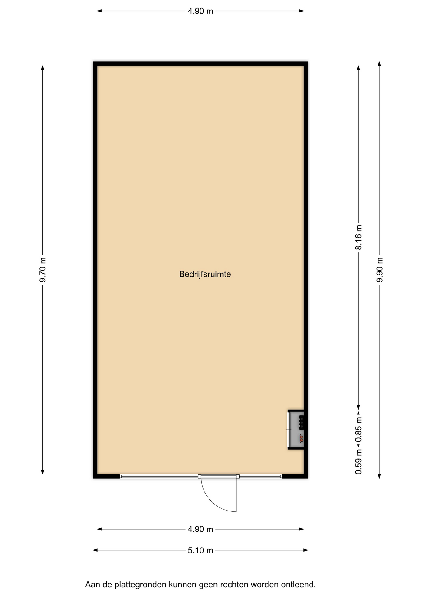 De bedrijfsruimte heeft een totaal verhuurbaar vloeroppervlakte van circa 48 m².