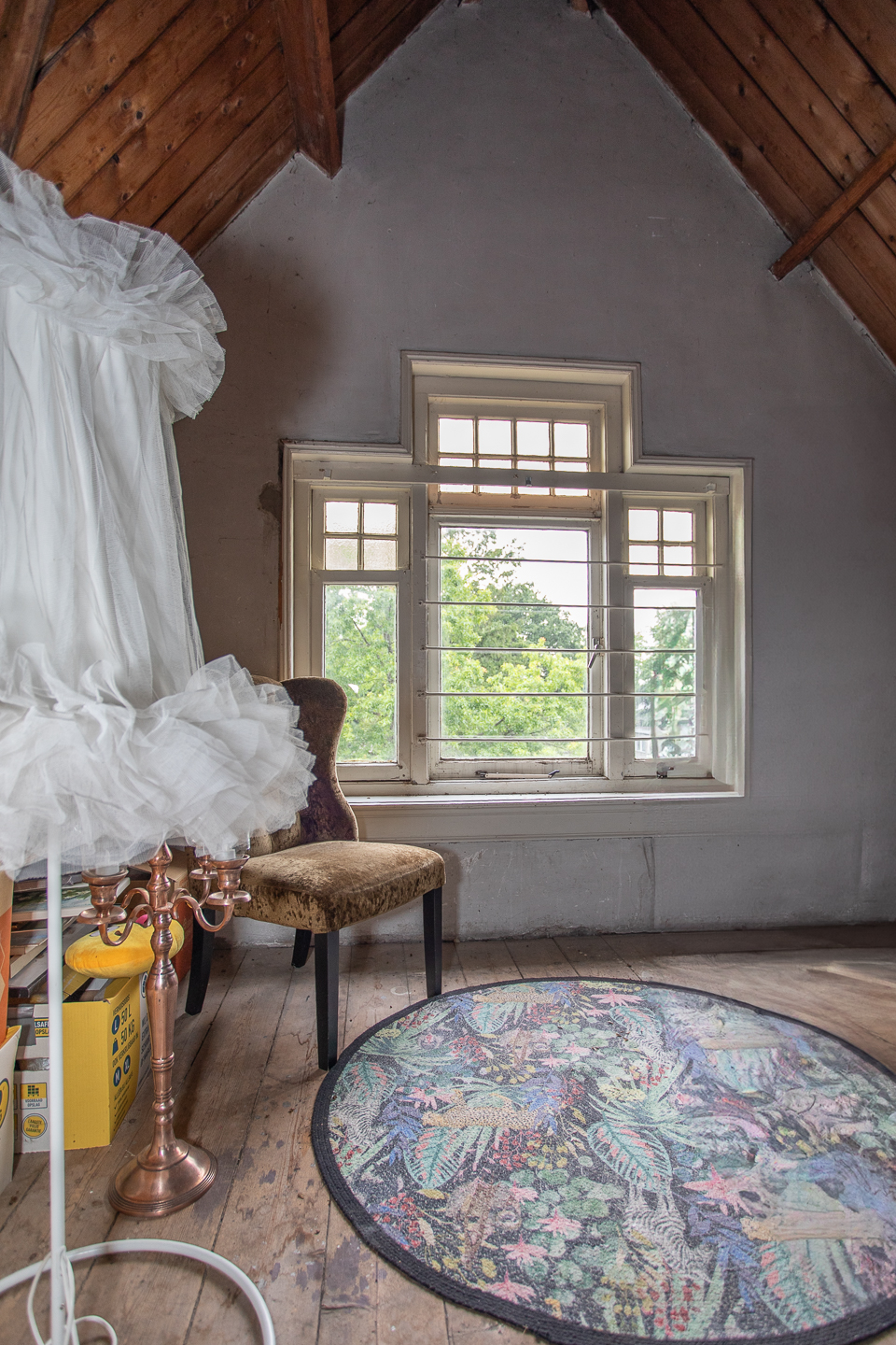 – Glas in loodramen met fraaie bordes trap en hoge plafonds.