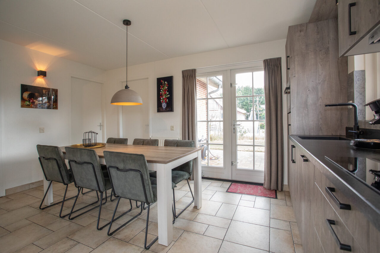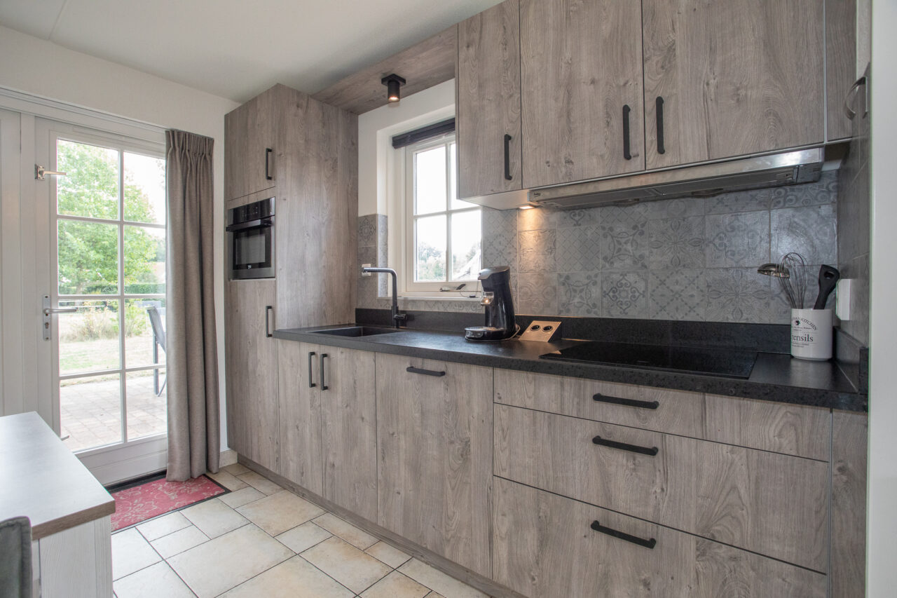 – Inbouwapparatuur keuken: inductiekookplaat met afzuigkap, koelkast met vriesvak, combimagnetron en vaatwasser;