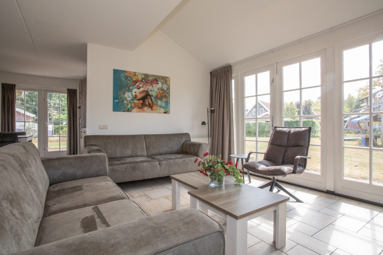 Geniet van de rust en ruimte in deze schitterende recreatiewoning voor zes personen, gelegen op een centrale locatie van Buitengoed Het Lageveld. Zonder hinder van auto’s want het is gelegen aan een knus, autoluw straatje!