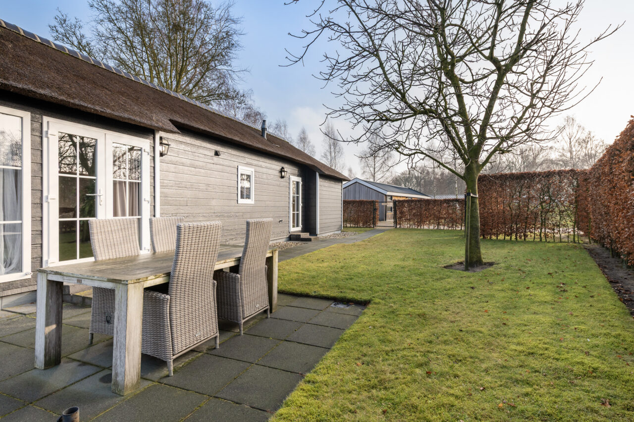 Buiten vind je een heerlijk terras aan het water, een plek waar je ’s ochtends geniet van een kop koffie met uitzicht op het kabbelende water en ’s avonds van lange, rustige zomeravonden.