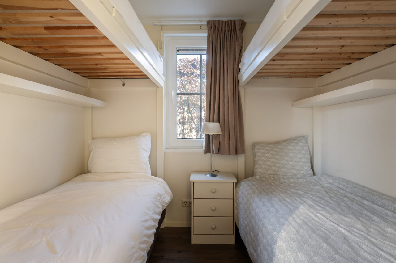 Er zijn twee comfortabele slaapkamers met voldoende ruimte voor jezelf en eventuele gasten. De badkamer is compact maar compleet uitgevoerd, inclusief een sauna waar je in alle rust kunt ontspannen. Daarnaast is via een vlizotrap de vliering bereikbaar, een praktische extra ruimte voor het opbergen van uw spullen.