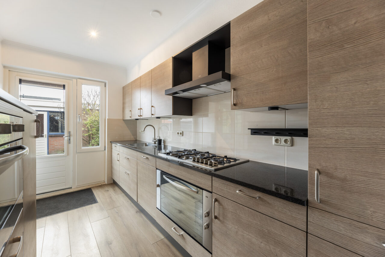 Begane grond: hal/entree, meterkast, toilet met fontein, gesloten keuken met inbouwapparatuur en een directe deur naar de tuin, zeer ruime doorzon woonkamer met schuifpui naar het terras.