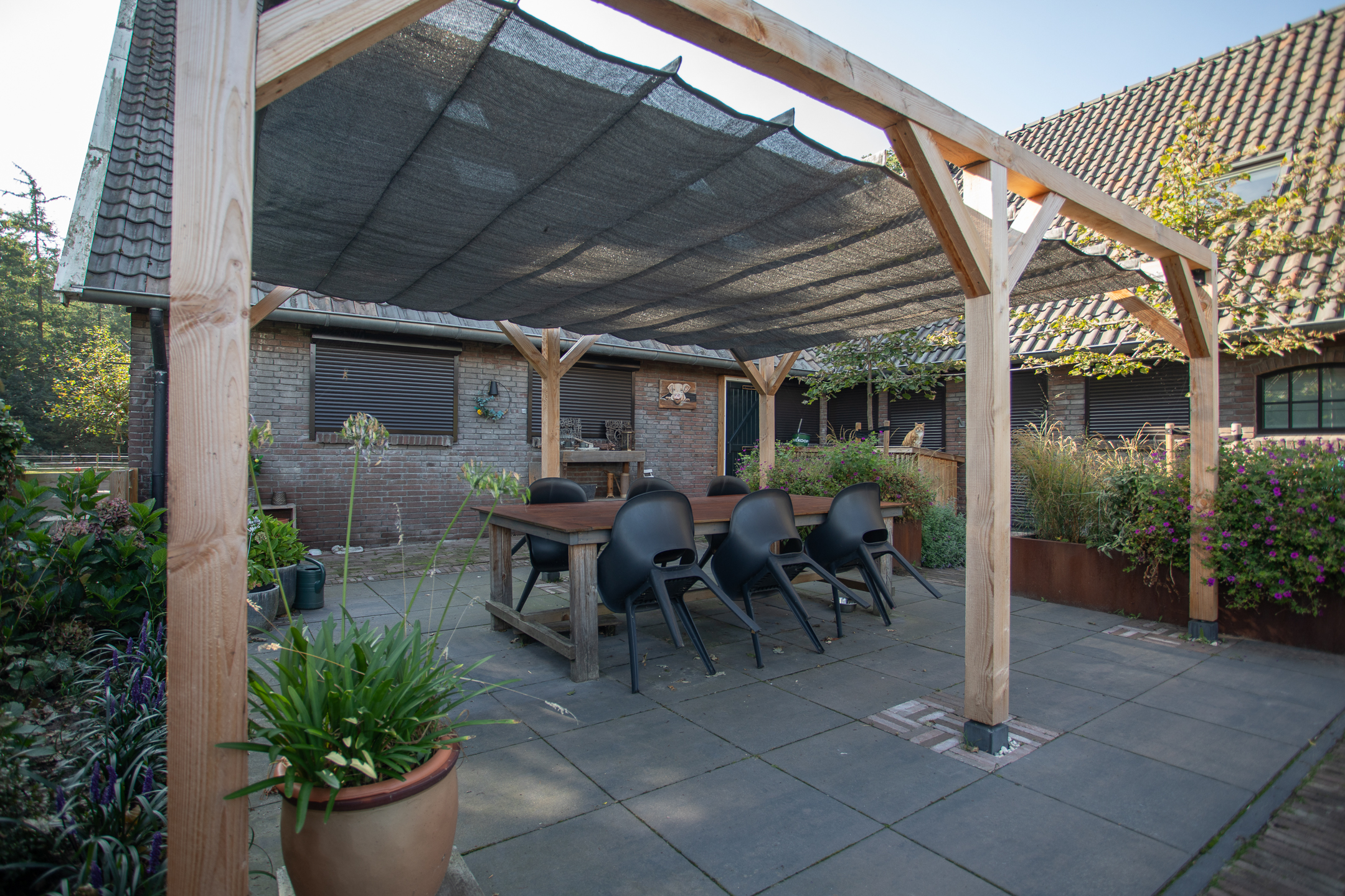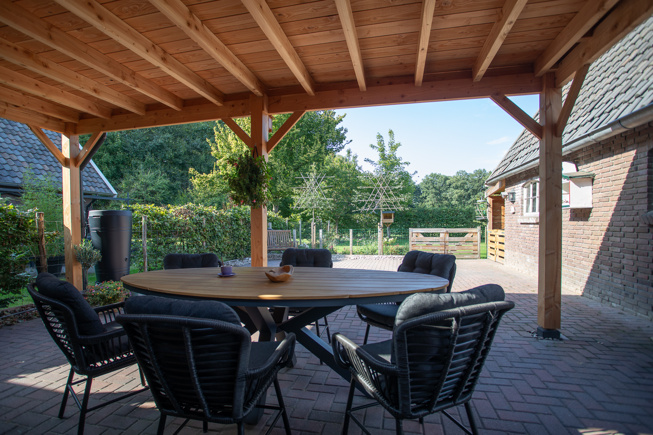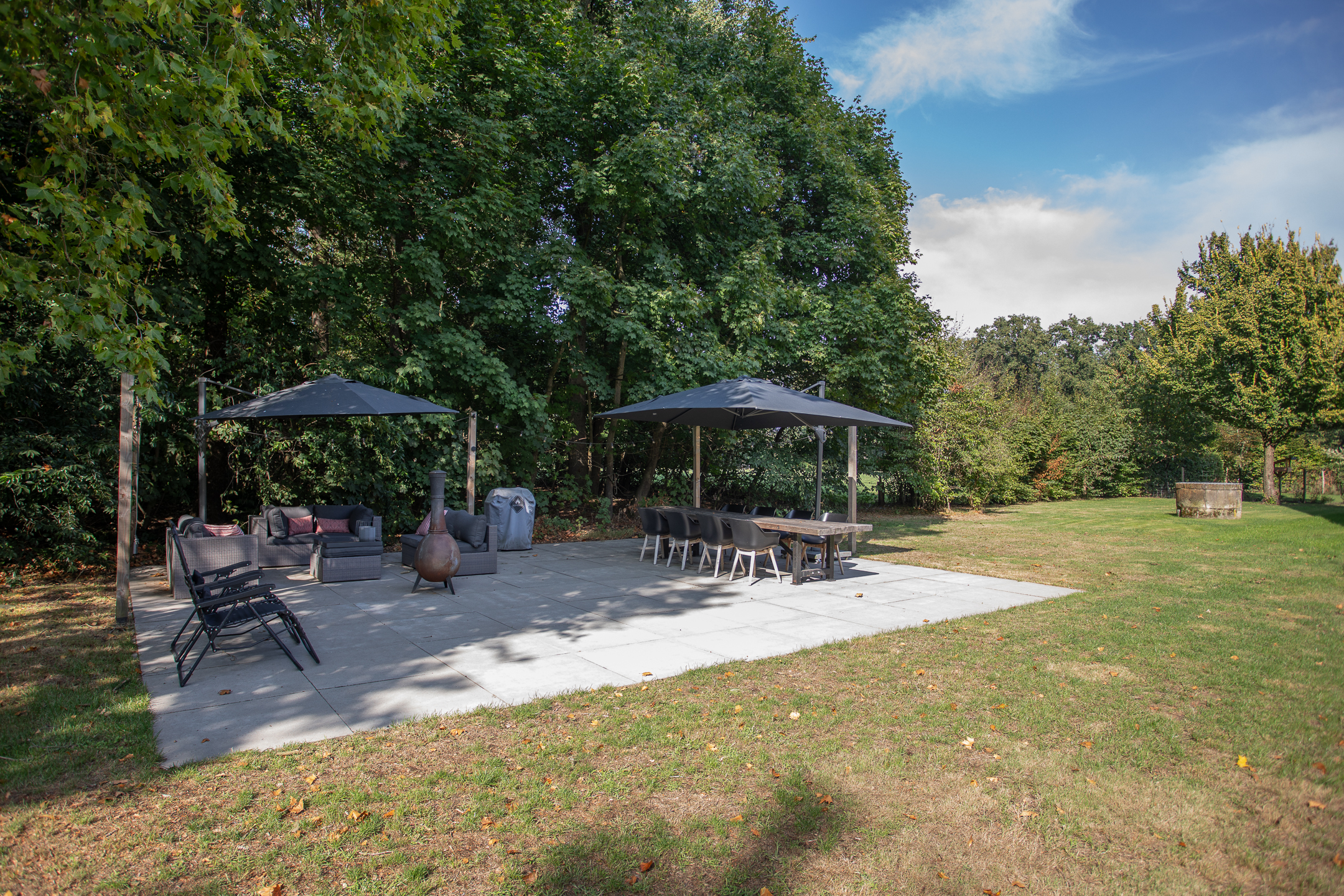 • Grote tuin met overkapping, terrassen en paardenweide.